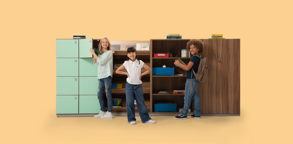 Lockers escolares: organização com propósito Com módulos de 4 a 16 portas, os lockers oferecem armazenamento seguro e ajudam a manter a sala organizada. Personalizáveis, contribuem para um ambiente funcional e confortável, favorecendo a concentração e o desempenho dos alunos.
