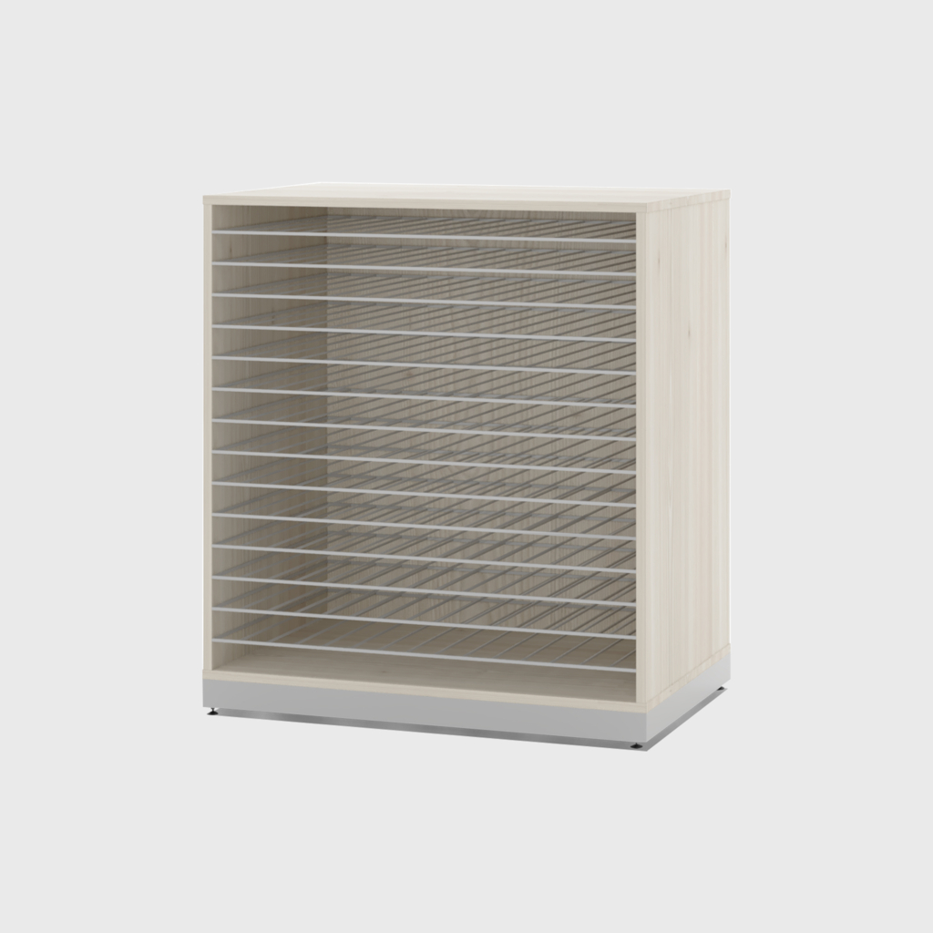 Ideal para secagem das artes das crianças. Suas prateleiras metálicas com corrediças telescópicas garantem a segurança no manuseio do produto.