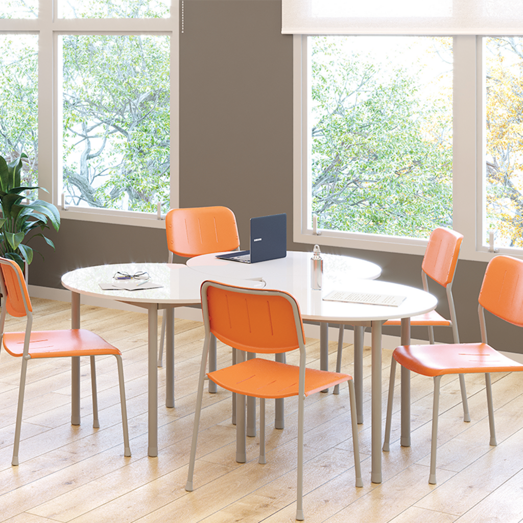A mesa escolar centopeia possui um tampo arredondado com detalhes em meia-lua, permitindo a criação de composições criativas que transformam a sala de aula em um ambiente mais interessante para aprender e se conectar. Este design inovador facilita diferentes formas de encaixe, promovendo a interação e a participação ativa dos alunos. A mesa escolar centopeia também oferece a possibilidade de rodízios, proporcionando maior mobilidade e versatilidade no ambiente de aprendizado, tornando o espaço educacional mais dinâmico, adaptável e eficiente.