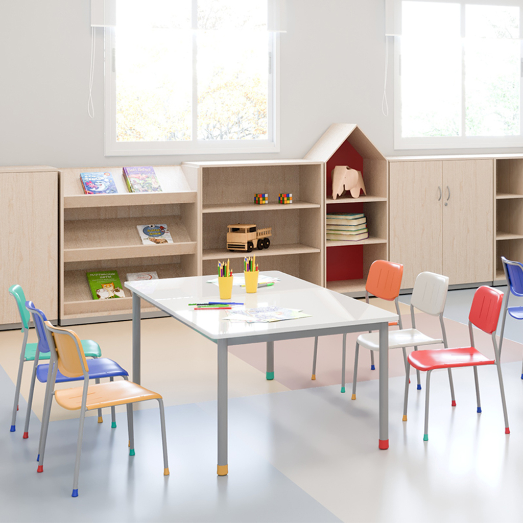 A sala de aula requer um espaço com muitas possibilidades e trabalhos coletivos onde os alunos são participantes ativos no processo de aprendizagem, a mesa coletiva retangular propõe atividades em coletivo impulsionando o desempenho de alunos.