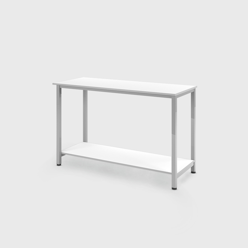 - Material: Pés em tubo de aço carbono secção redondo 2”, suporte de fixação do tampo em tubo secção retangular (40mmx20mm).