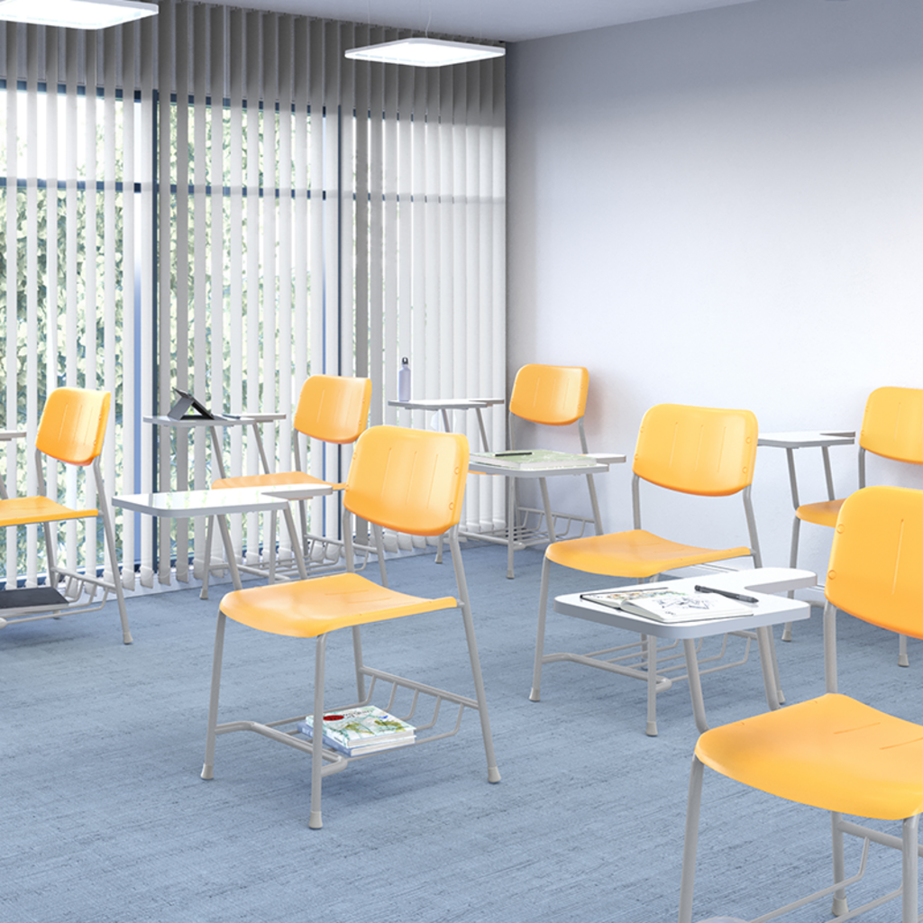 Acompanhar o desenvolvimento físico e intelectual dos estudantes é nossa missão básica. Por isso, a cadeira escolar universitária é projetada com um design ergonômico, ajustando-se perfeitamente às curvas das costas e pernas dos alunos que estão na fase adulta. Não basta apenas aumentar as dimensões dos móveis; é crucial oferecer cadeiras universitárias que promovam conforto e suporte adequado para manter a concentração e o bem-estar durante os estudos. Nossa cadeira escolar universitária é ideal para proporcionar um ambiente de aprendizado eficiente e confortável.