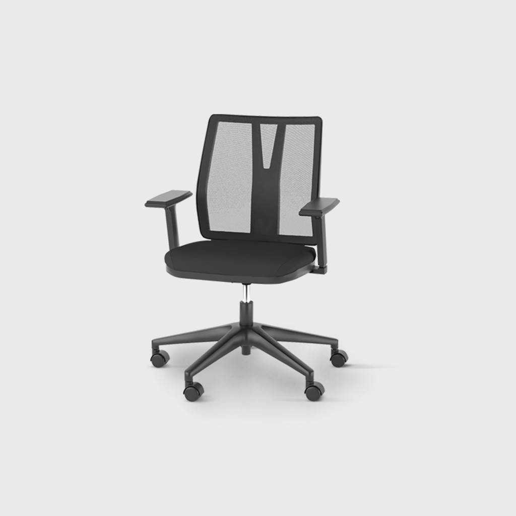 Desenvolvida com a proposta de inovar o ambiente corporativo, trazendo mais conforto e produtividade, deixando o ambiente leve e moderno. Seu encosto é coberto por uma tela, o que o deixa respirável. Seu mecanismo dispõe de ajustes e regulagem de altura. Os rodízios facilitam a liberdade de movimentação.