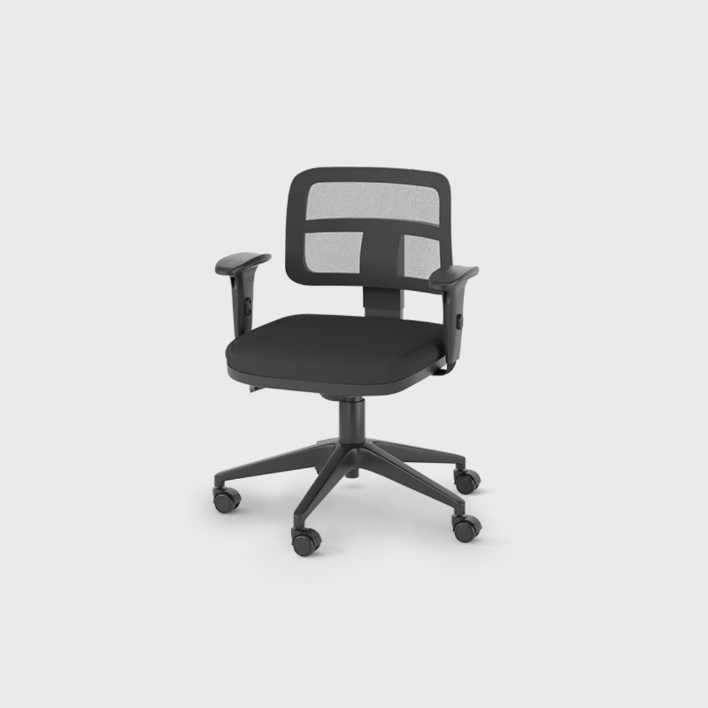 Uma cadeira ágil, não convencionalmente simples, proporciona conforto imediato, com mínimo de ajustes, regulando sua altura e braços. Os rodízios facilitam a liberdade de movimentação.
