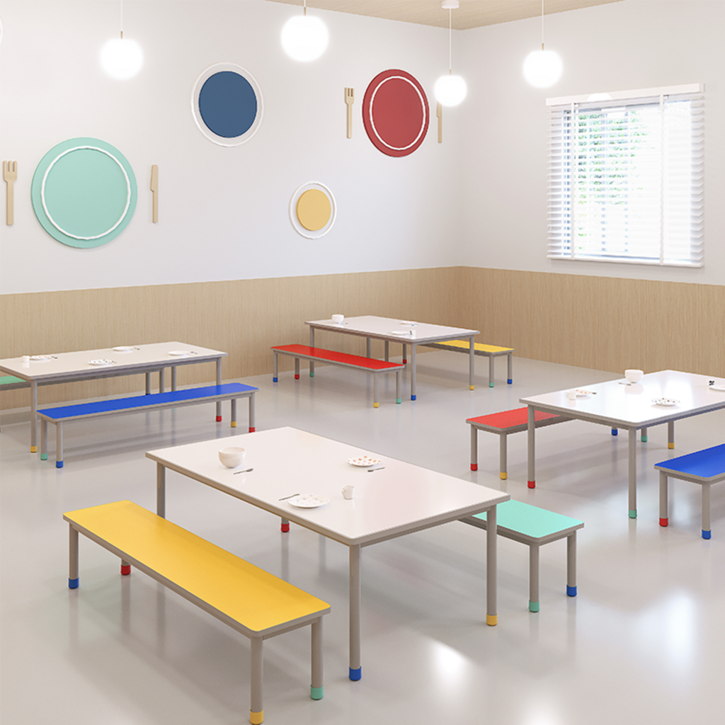 O recreio é um dos momentos de maior interação entre os alunos, ótimo para fazer amigos, aprender a cooperar em grupo e a respeitar os outros, valores cultivados por toda a vida. Assim, é fundamental oferecer um espaço agradável tanto para fazer as refeições como para interagir.