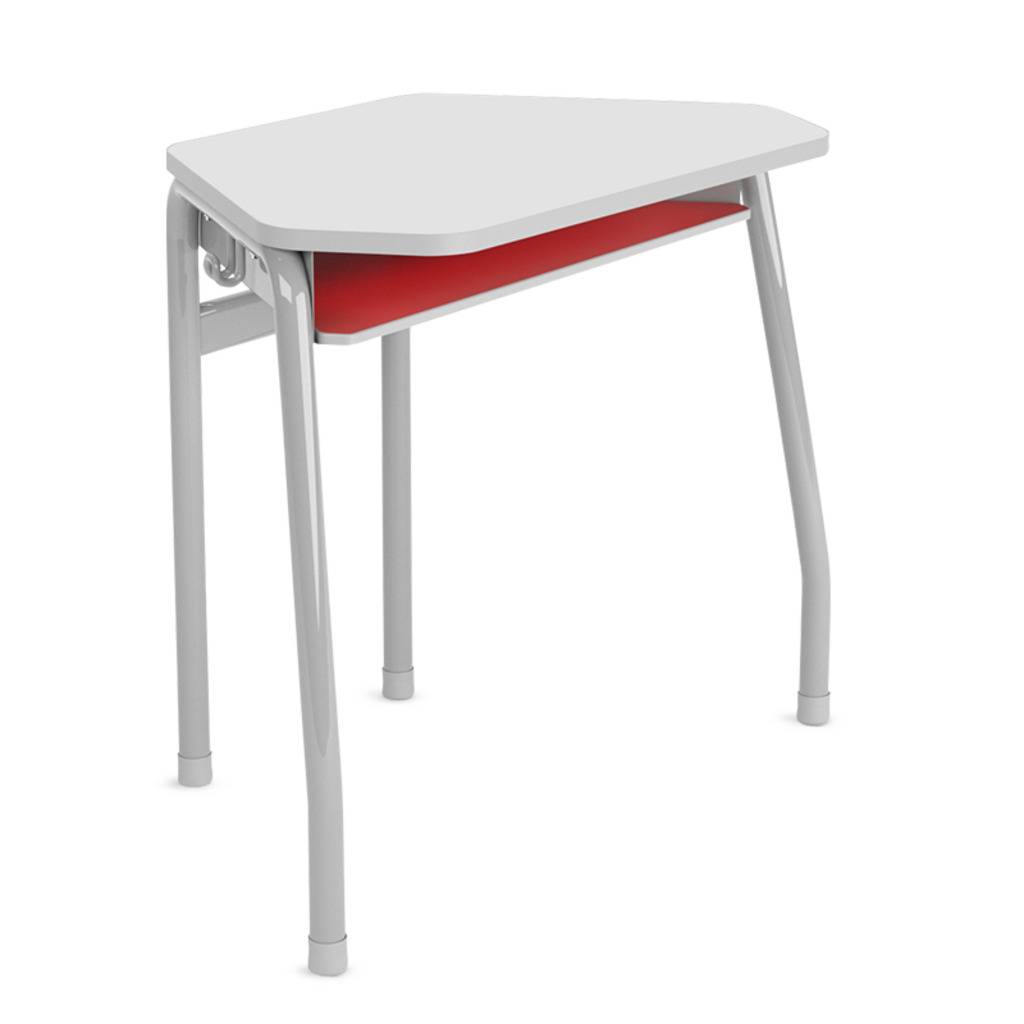 Uma mesa escolar versátil e que pode ser organizada de várias maneiras criativas, sendo ideal para aprendizagem colaborativa. Possui apoio para mochila e oferece três opções de porta-livros. Além disso, há a opção com rodízios para maior mobilidade, facilitando a reconfiguração do espaço de acordo com as necessidades dos alunos.