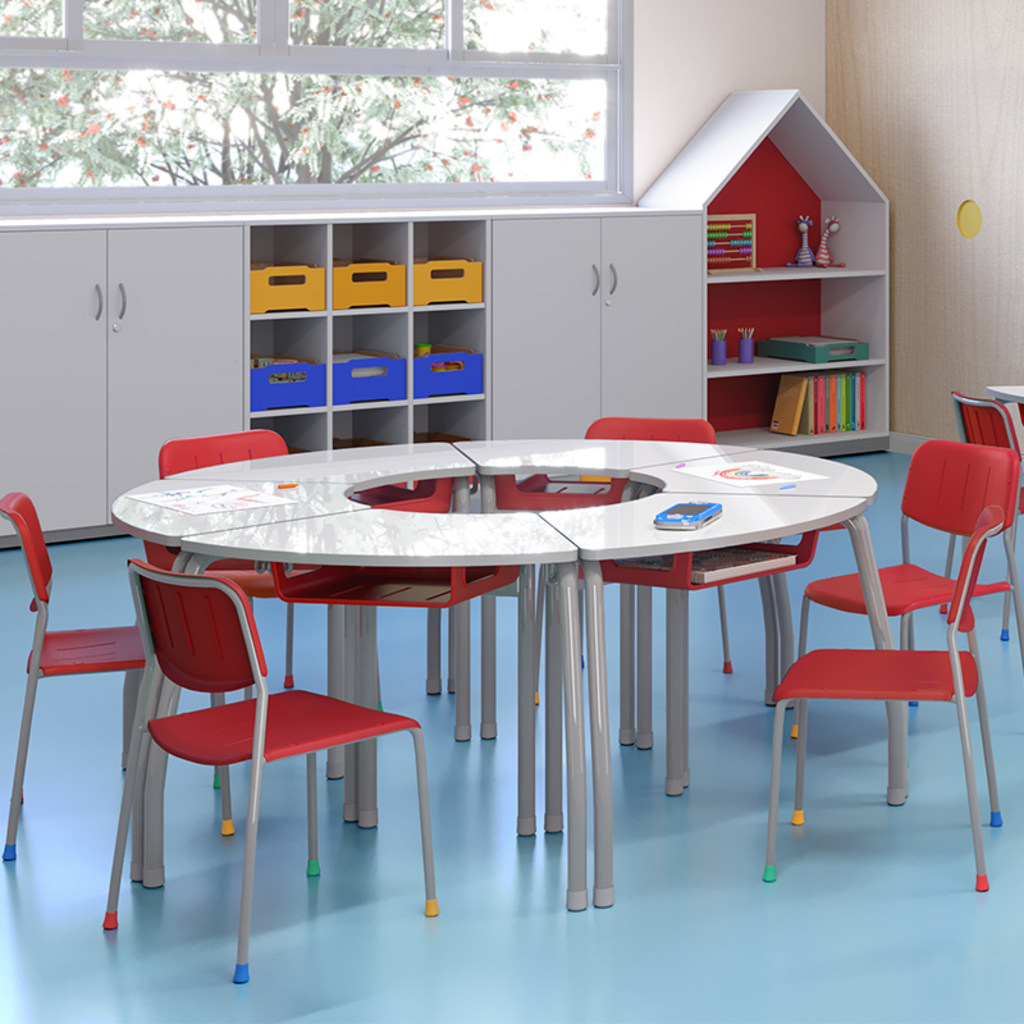 A Mesa Smart Curva foi criada para facilitar novas dinâmicas de aprendizagem. Seu formato permite composições rápidas e intuitivas, do trabalho em grupo às formações em semicírculo, mudando a sala em poucos minutos. E essa flexibilidade vem com uma construção pensada para o uso intenso, com materiais de alta densidade, estrutura firme e acabamentos que ajudam a proteger contra impactos e riscos do dia a dia. Uma mesa que se adapta ao método, sem abrir mão de qualidade e durabilidade.