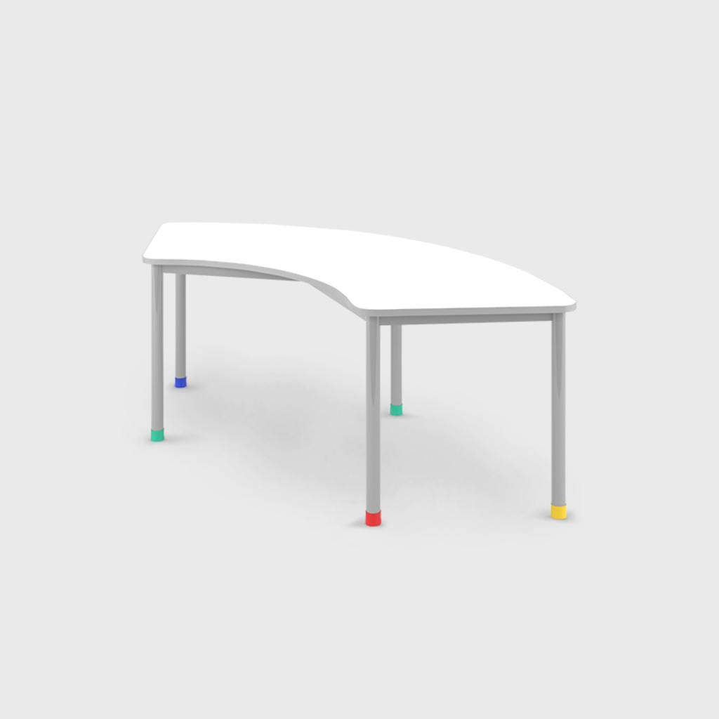Quando as crianças recebem a liberdade de participar coletivamente elas se ajudam e se desenvolvem no trabalho em grupo. a linha de mesa curva ajudará o aluno a usar sua Imaginação enquanto aprende e a partilhar seu conhecimento. As crianças respeitam os outros e controlam suas emoções e energia.
