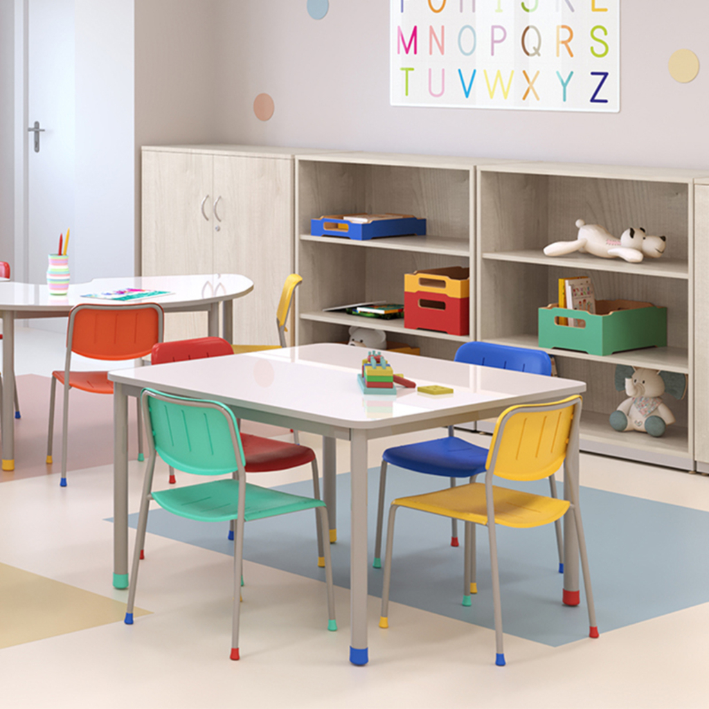 A sala de aula requer um espaço com muitas possibilidades e trabalhos coletivos onde os alunos são participantes ativos no processo de aprendizagem, a mesa coletiva quadrada propõe atividades em coletivo impulsionando o desempenho de alunos.