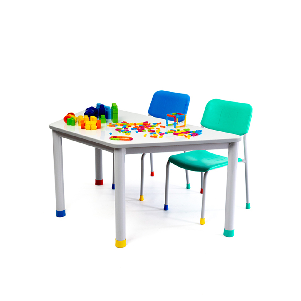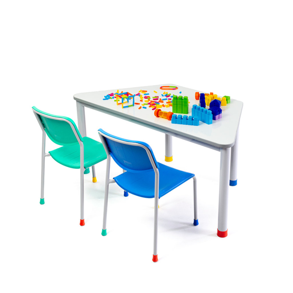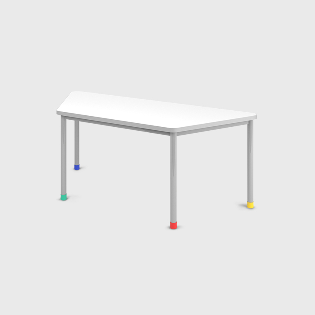 Para configurar o layout da sala de aula da maneira mais livre, a mesa coletiva trapézio possui um design que permite a personalização do ambiente que acomodam de dois a mais composições de mesas para maiores grupos.